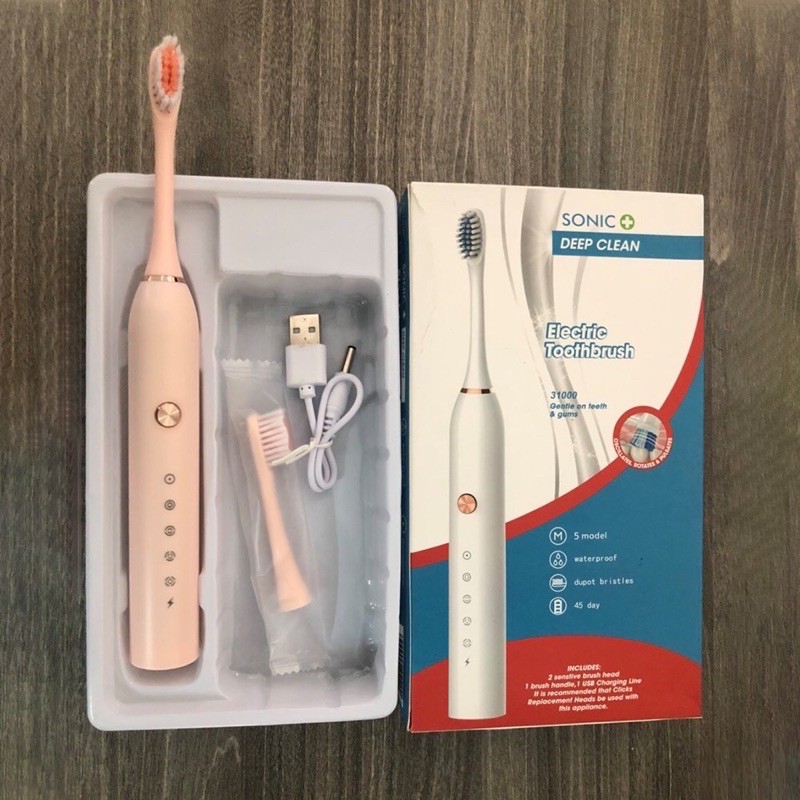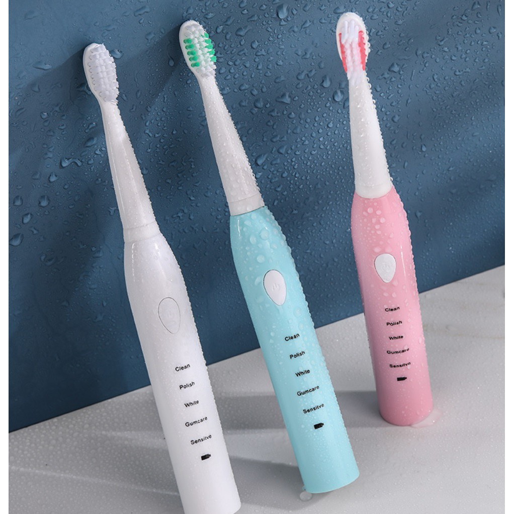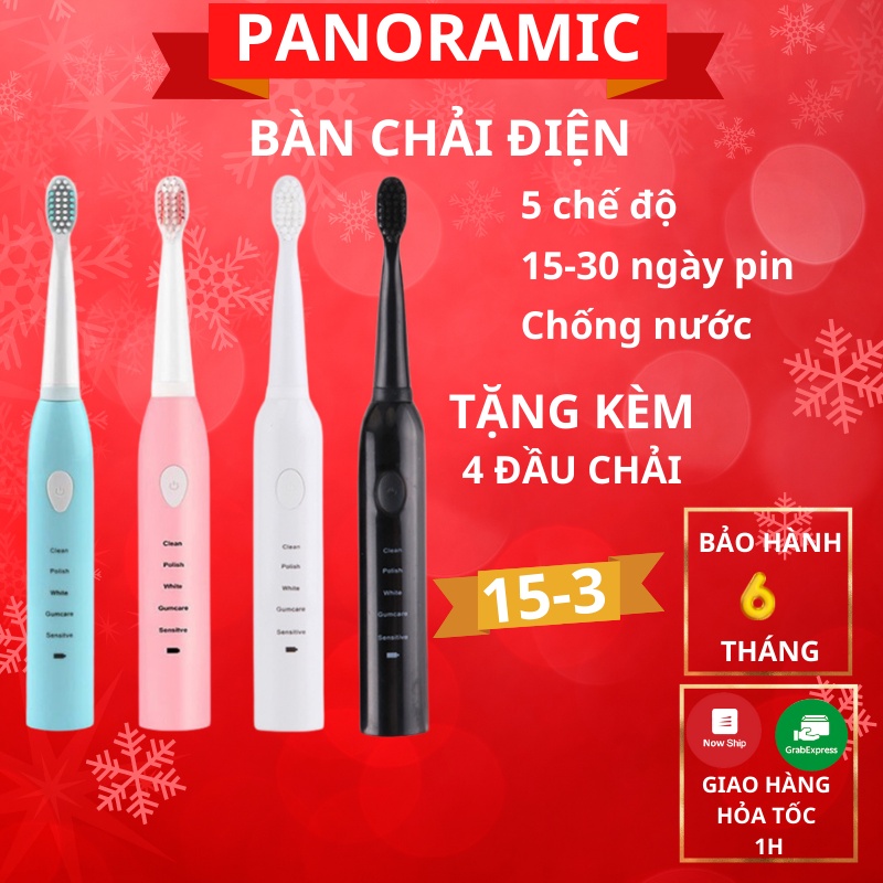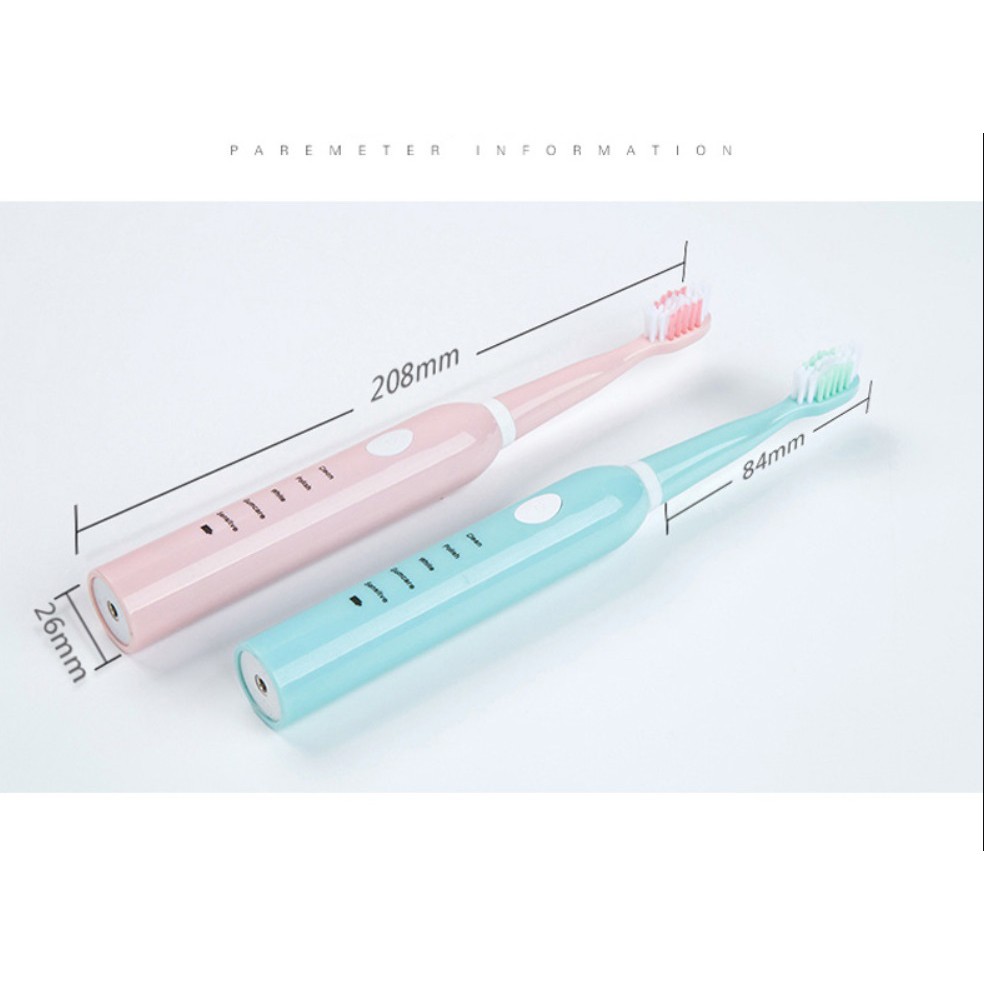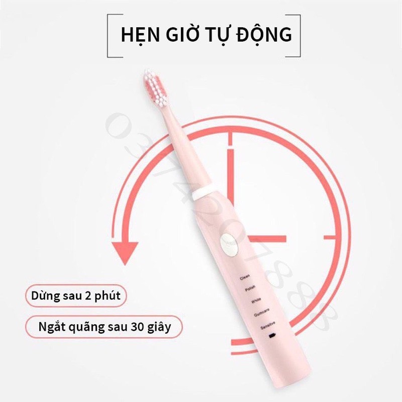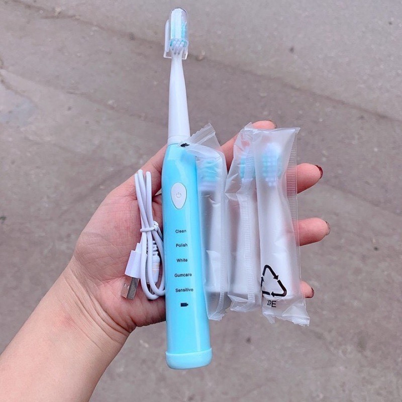 Bàn chải điện tự động đánh răng dùng sạc pin với 5 cấp độ tặng thêm 4 đầu chải thay phù hợp cho cả trẻ em và người lớn free ship